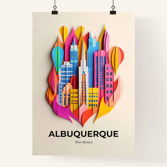 Vivid Albuquerque, New Mexico - a colorful cityscape with a clock tower in the background