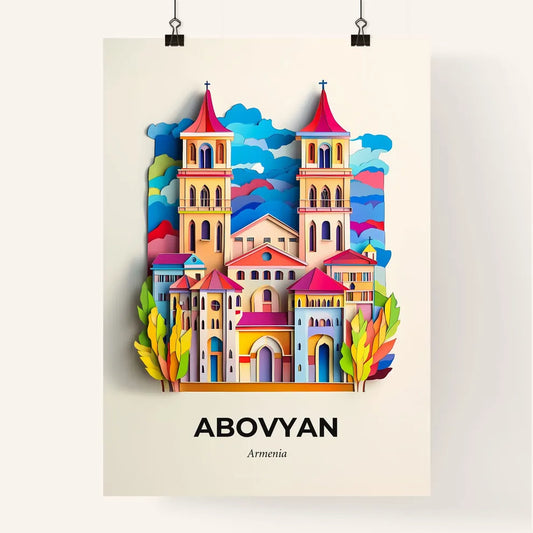 Vivid Abovyan, Armenia - a paper cut of a church with a sky background