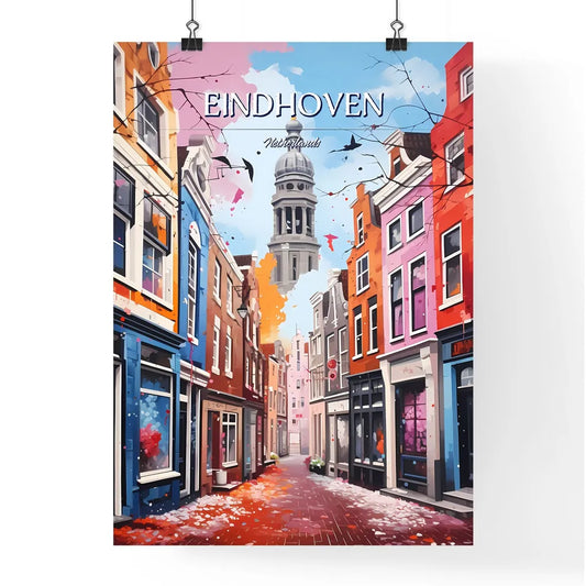 Eindhoven, Netherlands - Art print of a street with buildings and a tower