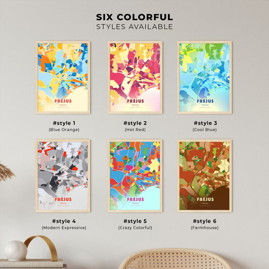 Colorful FRÉJUS FRANCE Fine Art Map Poster | Customizable