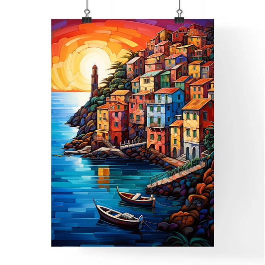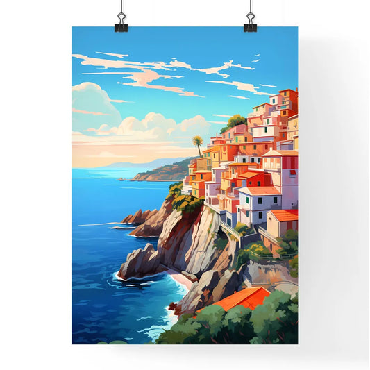 Colorful Buildings On A Hill By The Water With Cinque Terre In The Background Art Print