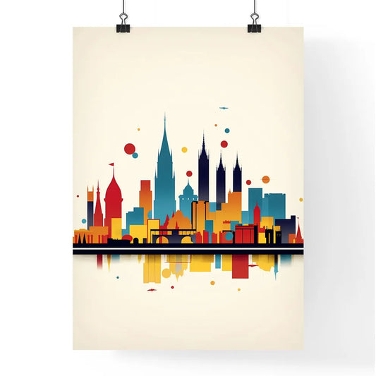 A Poster of minimalist Barcelona skyline - A Colorful City Skyline With Many Buildings