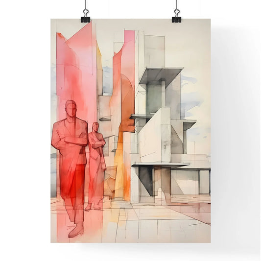 A Poster of minimalism architecture - A Drawing Of A Couple Of Men Standing Next To A Building