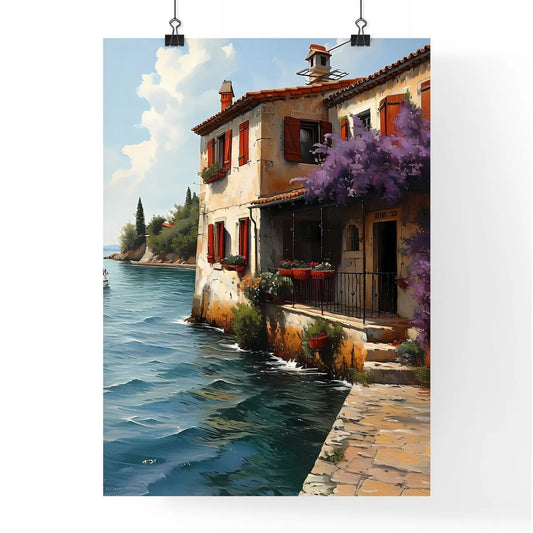 A Poster of Provence France - A House With Purple Flowers And Trees