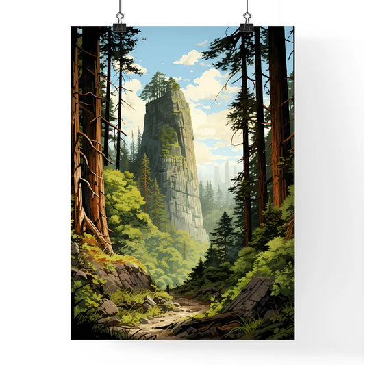A Poster of Redwood National Park - A Mountain With Trees And A Path