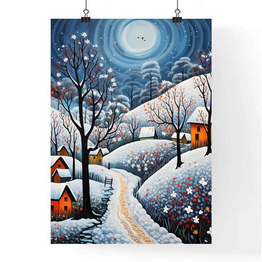 A Poster of snow landscape - A Painting Of A Village In The Snow