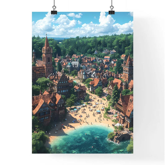 A landscape of the German countryside - Art print of a town with many buildings and a beach