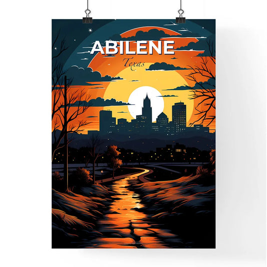Abilene Skyline Sunset Cityscape Poster Art - A building with a tower and trees