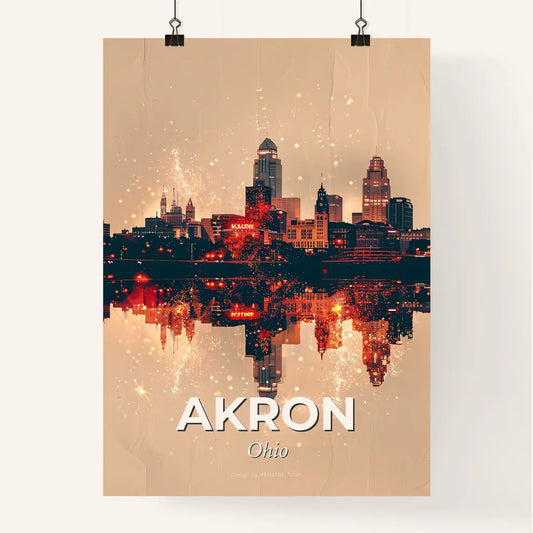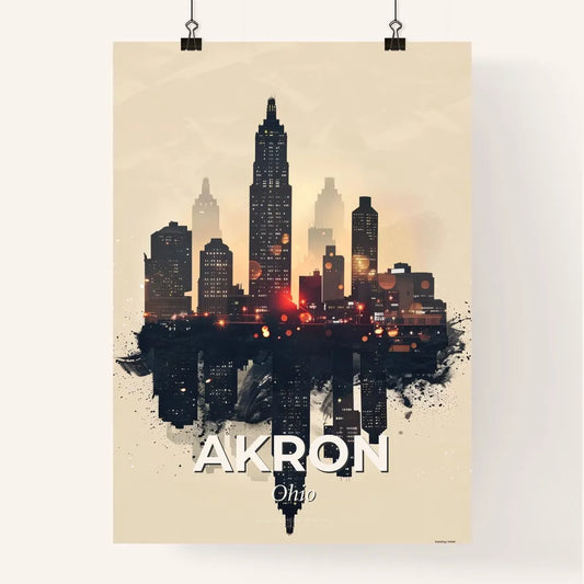 Akron Ohio Urban Composite Cityscape Poster - A city skyline with lights