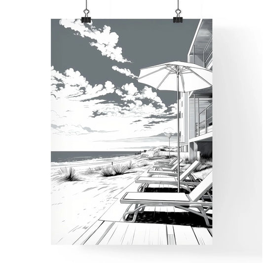 A Poster of A summer beach - A Building With A Walkway And A Beach