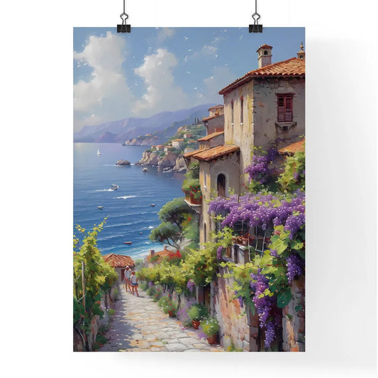 A picture of a Sicilian vineyard - Art print of a painting of a town by the sea