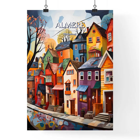 Almere, Netherlands - Art print of a painting of a row of colorful houses