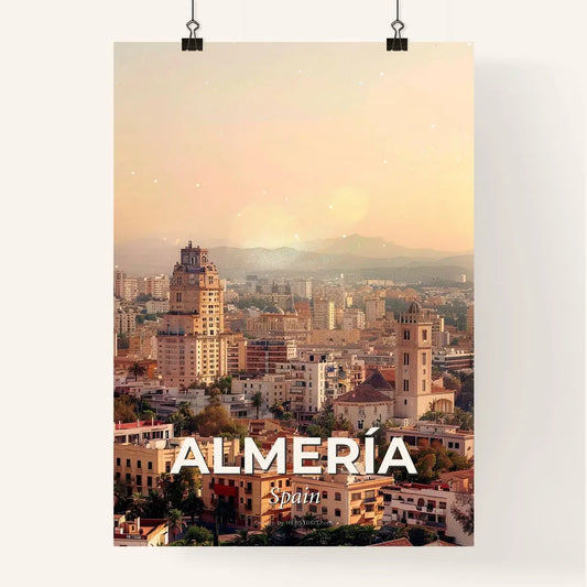 Almeria Skyline Double Exposure Art Print - A large building with a tower and a tower