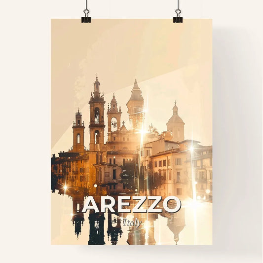 Arezzo City Skyline Double Exposure Art Poster - A reflection of a building in water