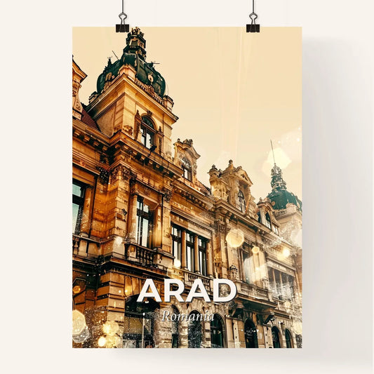 Arganzuela Skyline: Vibrant and Sparkling Poster Art - A large building with towers and a sun shining through it