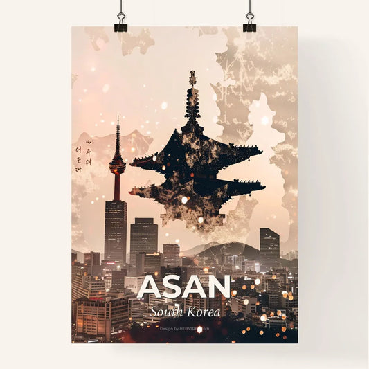 Asan, South Koreas Skyline Double Exposure Art - A city with a tower and a city in the background