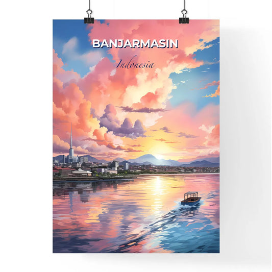Banjarmasin, Indonesia Skyline Art Painting, Vibrant Cityscape with River Boat Artwork