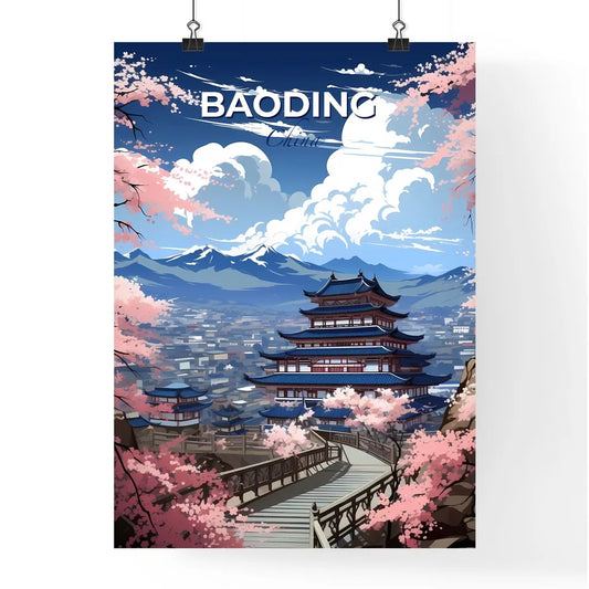 Baoding China Skyline Painting Artistic Vibrant Cityscape Architecture Bridge Mountains
