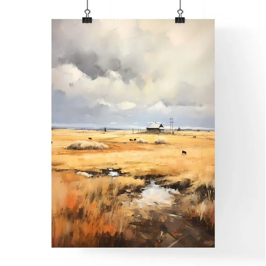 A Poster of Farm on The Plains of Obscurity - A Field With Cows And A House