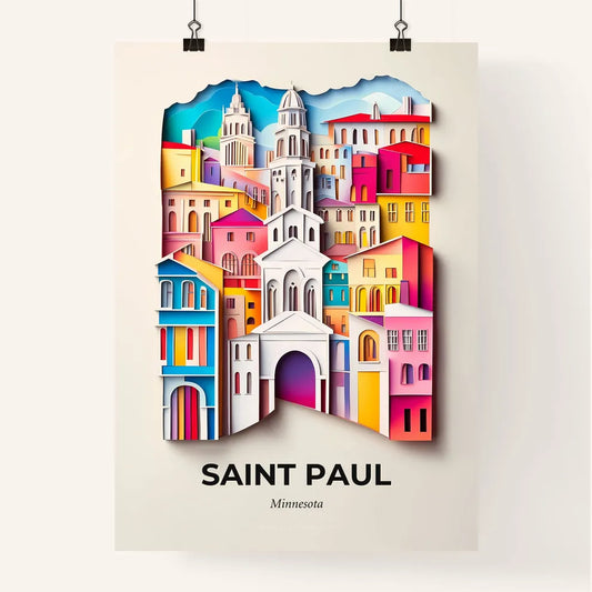 Vivid Saint Paul, Minnesota - a paper cut of a city with a church