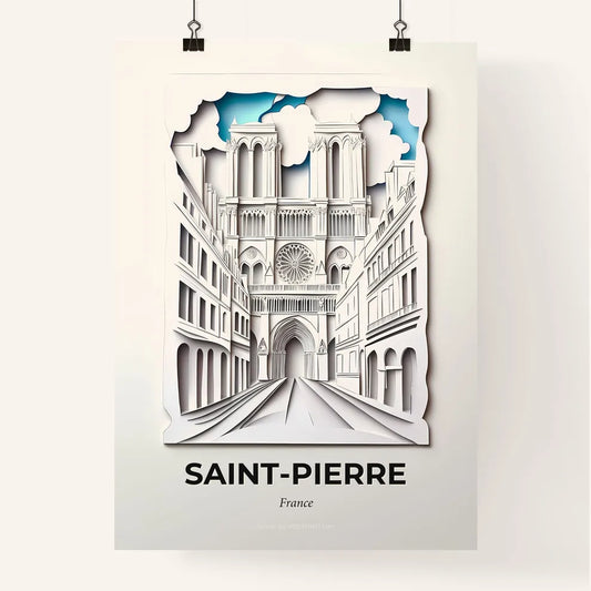 Vivid Saint-Pierre, France - a paper cut of a cathedral with a clock