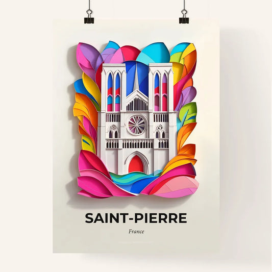Vivid Saint-Pierre, France - a paper cut of a church with a rainbow swirl