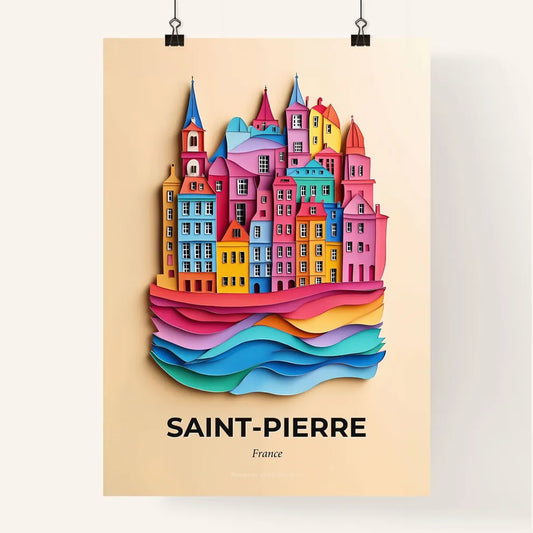 Vivid Saint-Pierre, France - a colorful city with a river and a clock tower