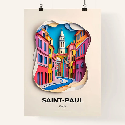 Vivid Saint-Paul, France - a paper cut of a city with a church