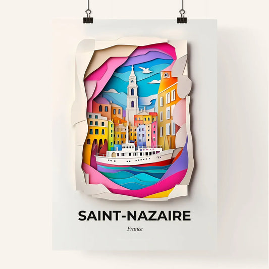 Vivid Saint-Nazaire, France - a paper cut of a city with a boat