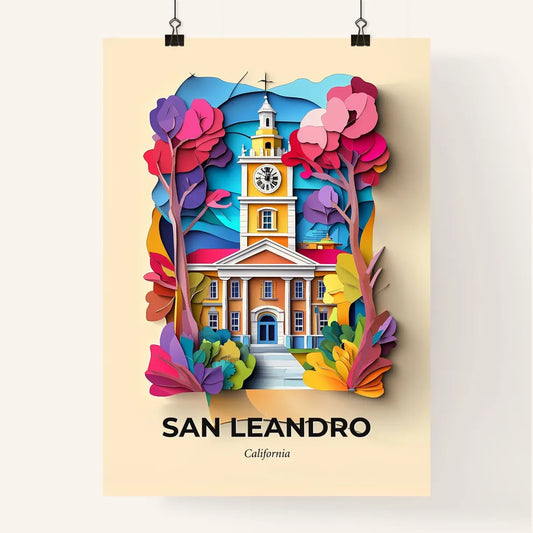 Vivid San Leandro, California - a paper cut of a church with a clock tower