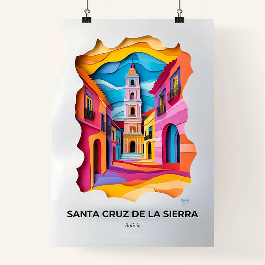 Vivid Santa Cruz de la Sierra, Bolivia - a colorful picture of a city with a clock tower