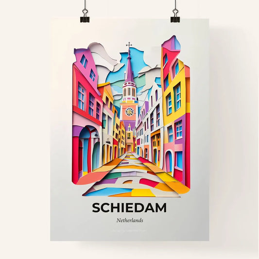 Vivid Schiedam, Netherlands - a colorful city street with a clock tower