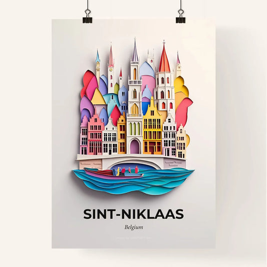 Vivid Sint-Niklaas, Belgium - a paper cut of a castle with a boat in the water