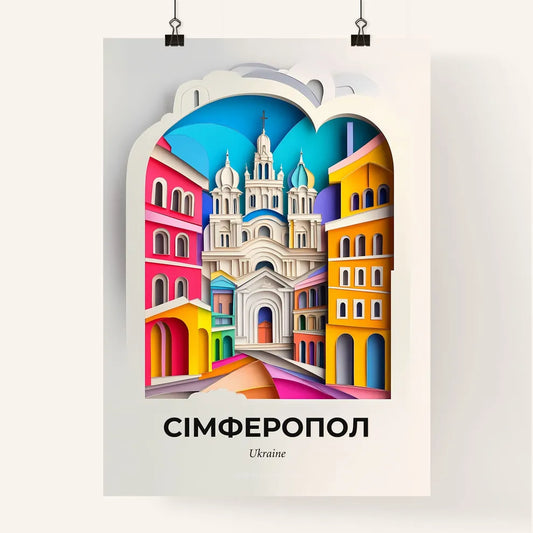 Vivid Simferopol, Ukraine - a paper cut of a city with a church