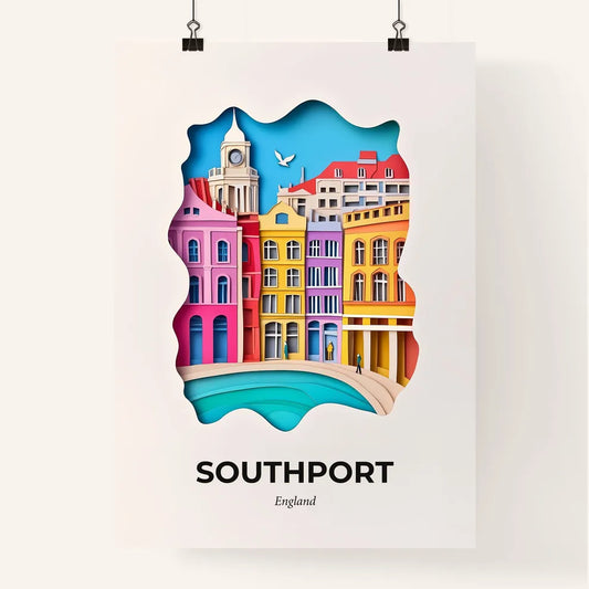 Vivid Southport, England - a paper cut of a city with a clock tower