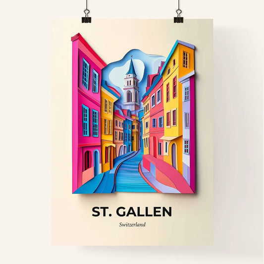 Vivid St. Gallen, Switzerland - a colorful city street with a clock tower