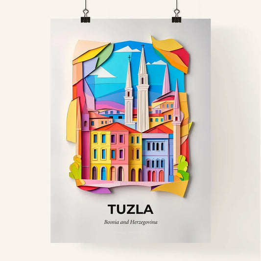 Vivid Tuzla, Bosnia and Herzegovina - a paper cut of a city with a clock tower