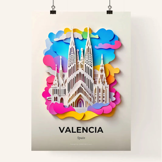 Vivid Valencia, Spain - a paper cut of a church with a rainbow background