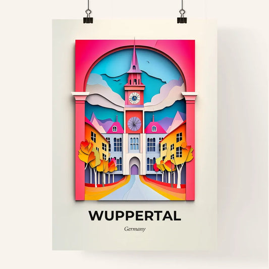 Vivid Wuppertal, Germany - a clock tower is shown in a paper cut style