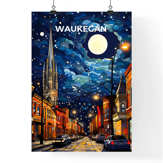 Waukegan, Illinois, A Poster of a street with cars and a church in the background