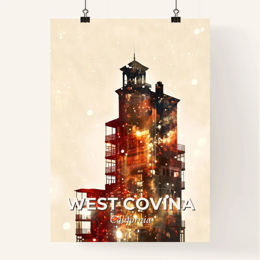 West Covina Architecture Poster Skyline Local Colors - A building with a tower and a tower