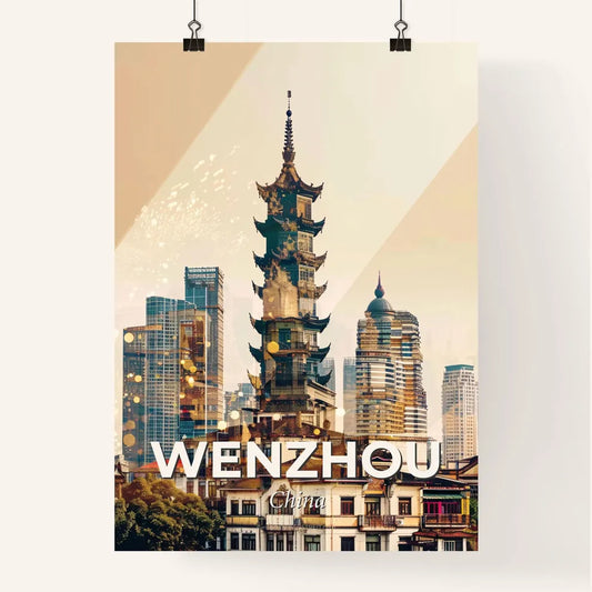 Wenzhou City Skyline Double Exposure Composite Poster Art - A building with a tower