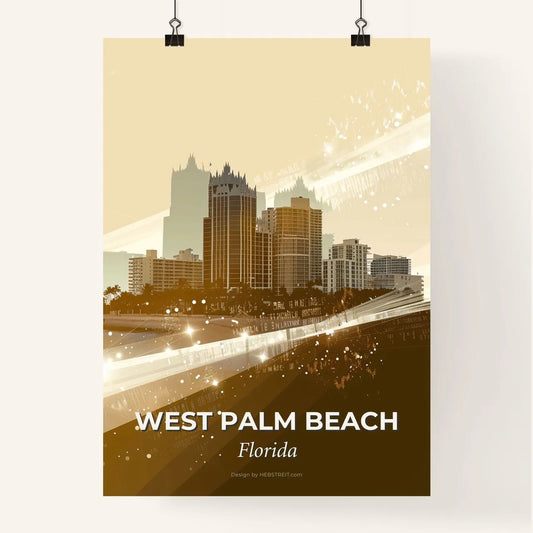 West Palm Beach Skyline Double Exposure Art Poster - A city skyline with lights and stars