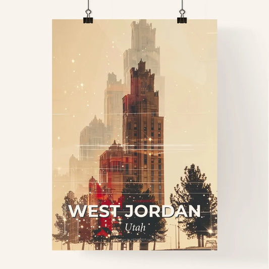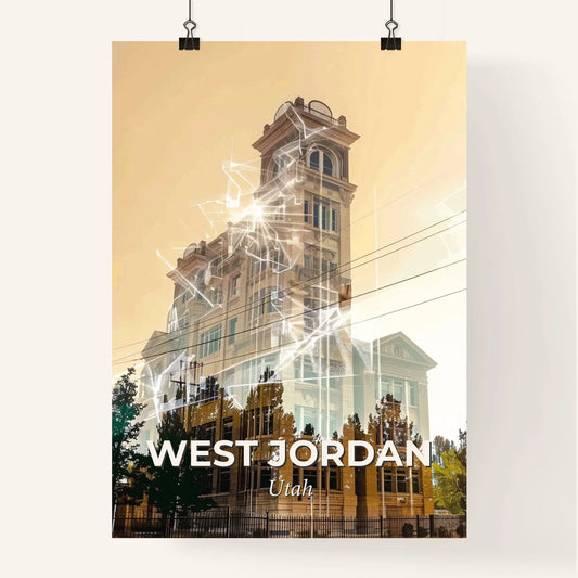 West Jordan City Skyline Composite Poster Art - A building with a clock tower and trees