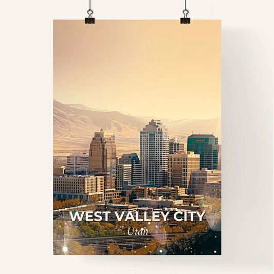 West Valley City Skyline Modern Art Poster - A city with a mountain in the background