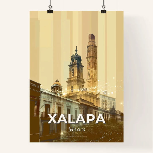 Xalapa: Panoramic Double Exposure Skyline Art - A tall building with a tower