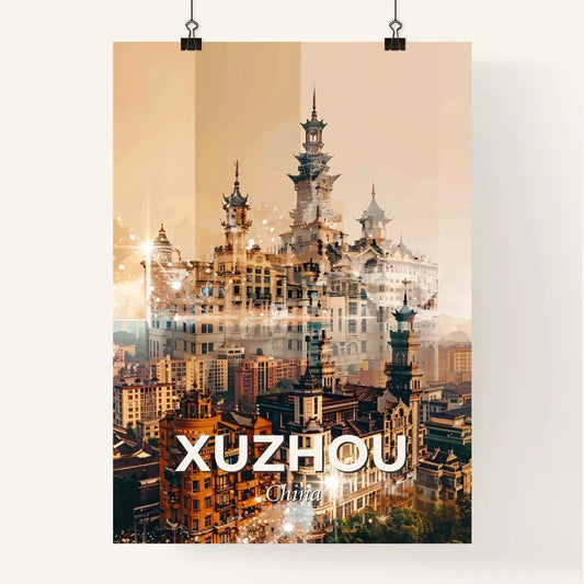 Xuzhou City Skyline Double Exposure Composite Poster - A group of buildings with a tall tower