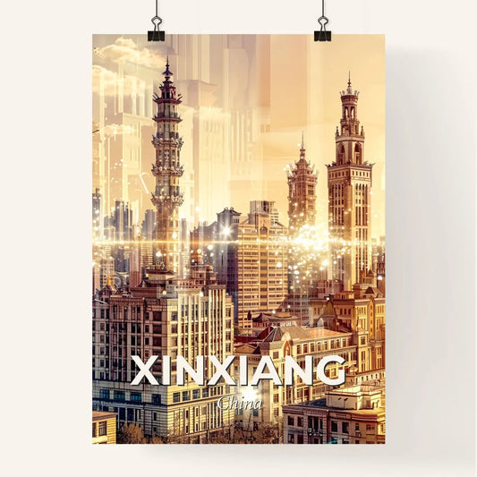 Xinyang Cityscape Art Deco Skyline Poster - A city with many buildings