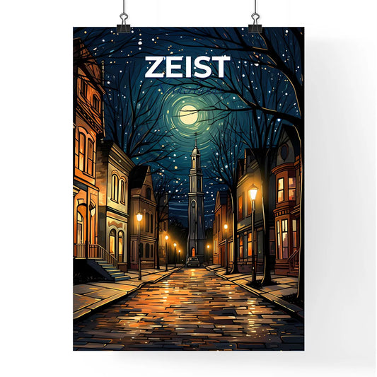 Zeist, Netherlands, A Poster of a street with buildings and a tower in the background