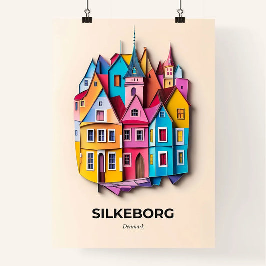 Vivid Silkeborg, Denmark - a group of colorful houses with a clock on the wall
